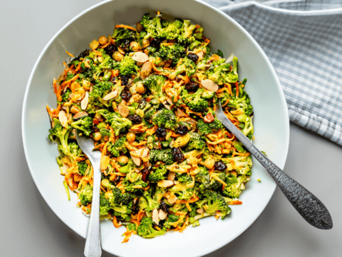 Découvrez cette salade de pois chiches au curry et brocoli, une explosion de saveurs et de bienfaits pour la santé ! Le brocoli cru, véritable atout nutritionnel, est riche en vitamines C et K, en fibres et en antioxydants. Il conserve tous ses nutriments lorsqu’il est consommé de cette façon, ce qui en fait un ingrédient parfait pour cette salade colorée et croquante.